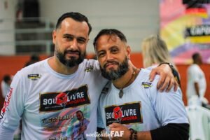 Em 2003, conheci o Mestre Bigodinho, e esse encontro foi marcante para minha trajetória. Fui capaz de aprender ainda mais sobre o Capurginga e a tradição da Capoeira. Desde então, venho trabalhando para unir a musicalidade ao jogo, ensinando os alunos a cantar enquanto praticam, o que traz uma dimensão única à arte.